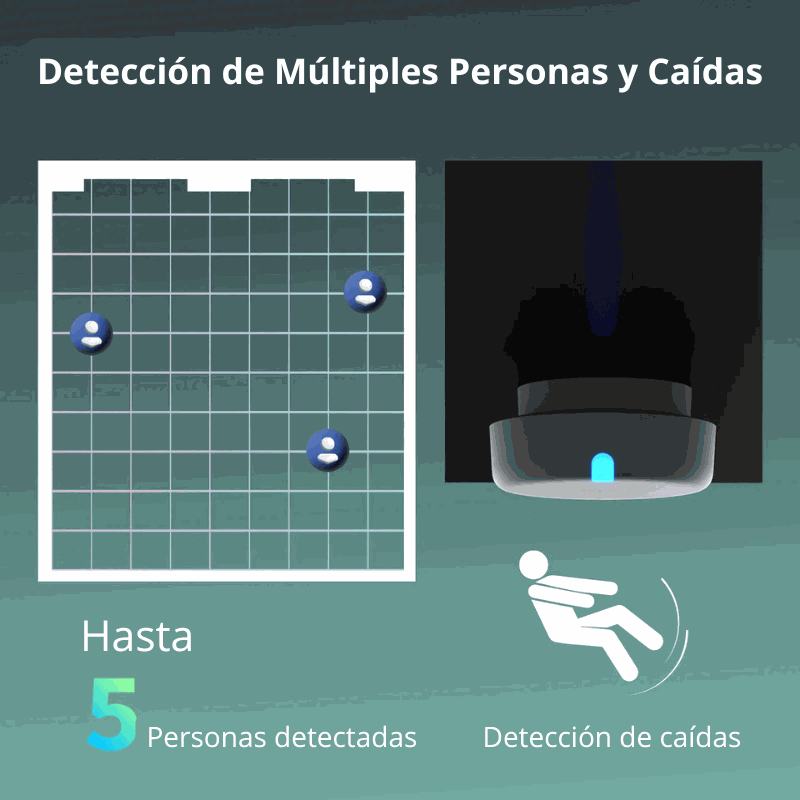 Al instalar el sensor en el techo, puede detectar una caída y enviar una notificación de alerta a través de la aplicación. Aunque no es un dispositivo médico, es una excelente ayuda para la seguridad en el hogar.