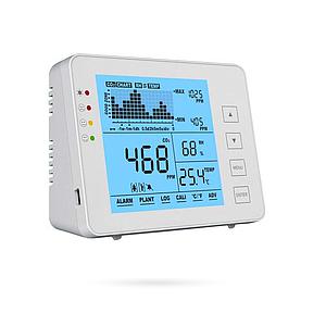 MEDIDOR DE CO2 AMBIENTAL + TEMPERATURA + HUMEDAD para ÁREAS CERRADAS con ALARMA VISUAL Y AUDIBLE ALTA PRECISIÓN