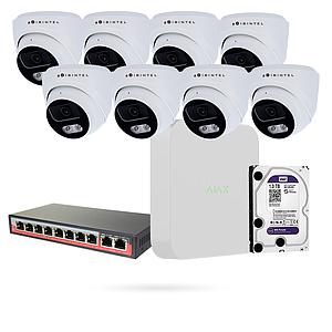 KIT CAMARAS POE IP x 8 DOMOS 4 MPX LENTE 2.8 mm IR 30m IP67 + NVR AJAX + HDD 1TB + SWITCH POE CAMARAS DOMO IP x 8 NVR 8 CH