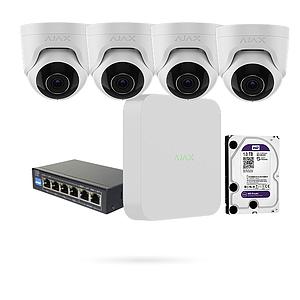 KIT AJAX 4 DOMECAM 8MP LENTE FIJA 2.8MM IA MICROFONO POE IP65 + NVR AJAX + HDD 1TB + SWITCH POE 4 PUERTOS NVR 8 CH