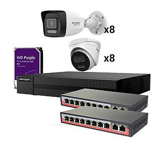 KIT CÁMARAS DE VIDEOVIGILANCIA IP POE 8 BULLETS + 8 DOMOS 4 MEGAPÍXELES Lente 2.8 mm IR 30m IP67 + NVR Pentaplex APP MÓVIL ONVIF + HDD 2 TB + 2 x SWITCH POE CÁMARAS IP HIKVISION x 16 NVR