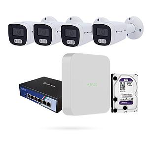 KIT CAMARAS IP x 4 BULLETS 4MPX POE LENTE 2.8 mm IR 25m AUDIO IP67 + NVR AJAX + HDD 1TB + SWITCH POE CAMARAS BULLETS IP x 4 NVR 8 CH