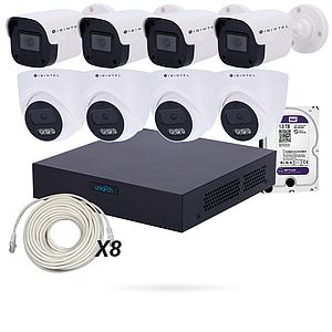 KIT 8 CAMARAS DE SEGURIDAD POE IBINTEL 4 DOMOS + 4 BULLET LENTE 2.8 mm IR 25m IP66 + NVR POE UNIVIEW + HDD 1TB + 8 CABLE UTP 20m CAMARAS IP IBINTEL x 8 NVR UNIVIEW AVISO: EL COLOR DEL CABLE PUEDE DIFERIR DE LA FOTO