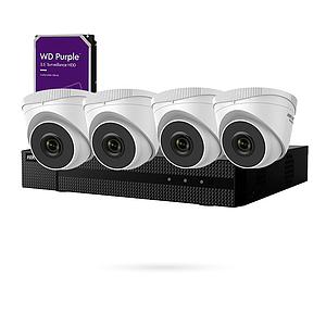 KIT CAMARAS DE VIDEOVIGILANCIA IP POE 4 DOMOS 4 MEGAPÍXELES LENTE FIJA 2.8mm IR 30m IP67 + NVR APP MÓVIL ONVIF + SWITCH 4 PUERTOS POE + HDD 1TB CÁMARAS IP HIKVISION x 4 NVR