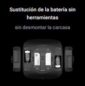 Funciona con 2 baterías CR123A preinstaladas, con una autonomía de hasta 6 años, y permite su sustitución sin herramientas.