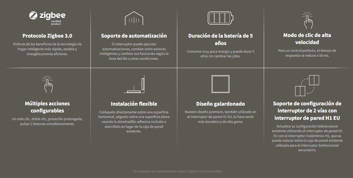 Para funcionar, el interruptor requiere el Aqara Hub con tecnología Zigbee 3.0, y es compatible con plataformas populares como Apple HomeKit, Google Assistant y Alexa.