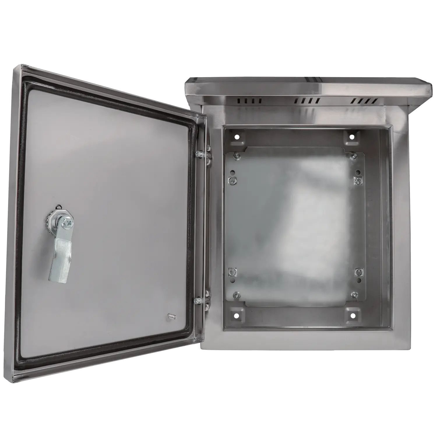 El diseño incluye rejillas de ventilación distribuidas por toda la caja, asegurando una óptima disipación del calor y permitiendo la operación eficiente de los equipos en su interior.