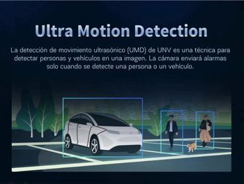 Integra detección de movimiento avanzada UMD, reduciendo falsas alarmas mediante la clasificación inteligente de eventos.