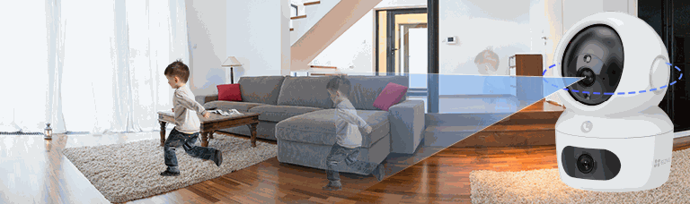 La EZVIZ H7c Dual 2K⁺ es una cámara wifi interior de doble lente, diseñada para proporcionar una cobertura total sin puntos ciegos.