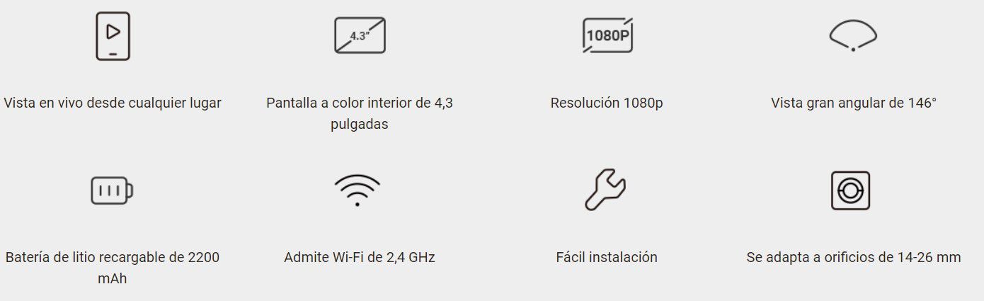 En cambio, este dispositivo incorpora una cámara de alta calidad con resolución 1080p y un lente gran angular de 146°, lo que permite una visión amplia y detallada. Esto facilita la observación tanto de las personas frente a la puerta como de objetos o actividades cercanas, ofreciendo una cobertura de seguridad completa.