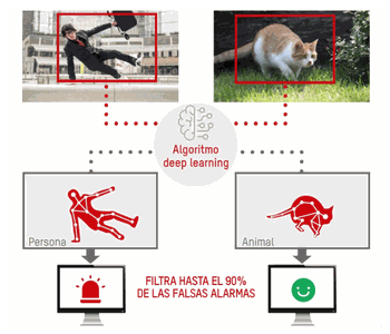 Tecnología basada en DeepLearning para clasificación de humanos y vehículos con reducción de falsas alarmas aplicado sobre: Cruce de Línea, Intrusión en Área, Entrada en área y Salida de área, Soporta disparador de alarma por objetivo específico (humano ó vehículo) Modelo de IA a gran escala específico para la protección perimetral, que reduce las falsas alarmas en un 90 % en comparación con las cámaras con IA convencionales. Rango VCA: Modelos de 4 mm: de 5 m a 80 m (durante el día), de 5 m a 60 m (durante la noche). Modelos de 2.8 mm: de 3 m a 70 m (durante el día), de 3 m a 50 m (durante la noche). *Resultado basado en una configuración estándar y un entorno de prueba.