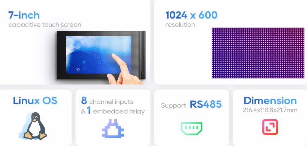 PANTALLA PARA VIDEOPORTERO IP WIFI POE PANTALLA TFT 7" 1024 x 600 LINUX ALARMAS ACCESO REMOTO