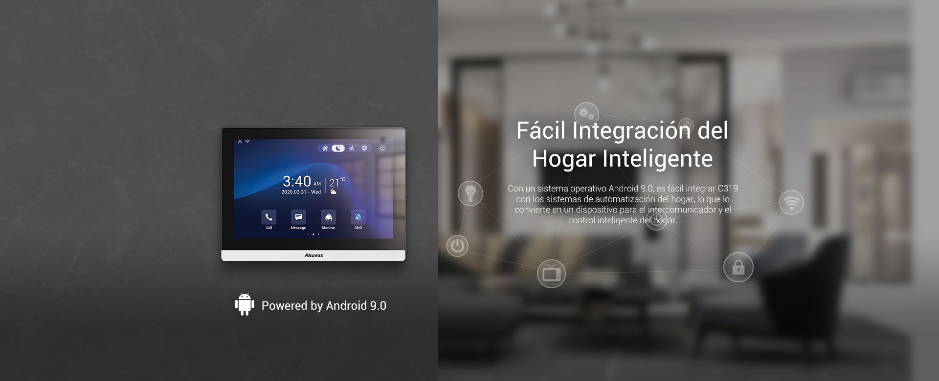 Por otro lado, este monitor videoportero AKUVOX ARCALIS con sistema operativo Android, proporciona la comunicación audiovisual con el videoportero a través del protocolo SIP 2.0.