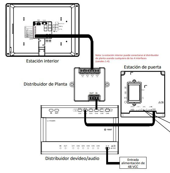 48 V, alimentado por el distribuidor 2 hilos 6ch o 12 V CC.