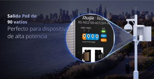 El switch industrial gestionable Reyee RG-NIS2100-4GT2SFP-HP está diseñado para entornos exigentes donde la conectividad robusta y estable es crítica.