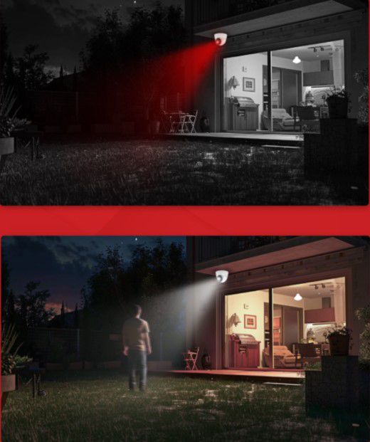 En este último, la cámara opera en blanco y negro utilizando el infrarrojo, pero al detectar la presencia de una persona, activa automáticamente el LED blanco de forma constante.