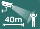 IR: 40m Led blanco: 40m