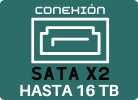 2 HDD SATA 3.5" de hasta 16 TB (no incluido) Soporta RAID