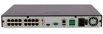 Dispone de 16 canales IP con resolución máxima de hasta 16 megapíxeles por cámara y un ancho de banda entrante de hasta 320 Mbps con funciones inteligentes desactivadas, lo que permite trabajar con cámaras de alta definición sin cuellos de botella.