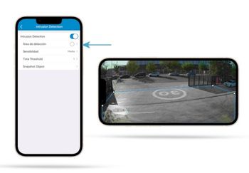 Prevención inteligente de intrusión. Detección precisa de humanos y vehículos para evitar falsas alarmas. Evento por cruce de línea, intrusión en área o entrada o salida de un área previamente definida