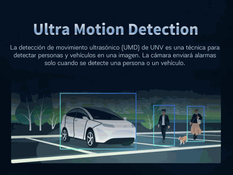 SIP (Smart Intrusion Prevention): Detección de humanos / vehículos y vehículos de dos ruedas sobre Cruce de línea, Intrusión en área, Entrada de áreas y Salida de área. UMD (Ultra Motion Detection): Detección de movimiento avanzada basada en la clasificación de humano y vehículo. Detección de temperatura: Detección de fuego, detección de humo, medición de temperatura, detección de humo de cigarro. Conteo de personas: Aforo de personas y conteo de personas dentro de un área Otras funciones: Metadatos de vídeo y monitorización de tráfico con cámaras LPR.