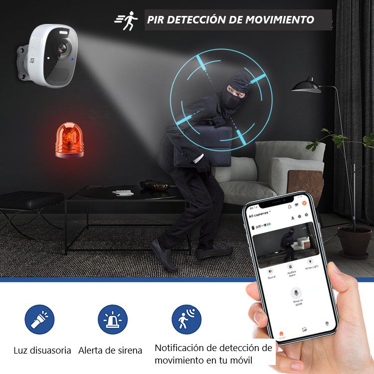 CAMARA DE VIGILANCIA EXTERIOR SIN CABLES CON RANURA PARA TARJETA DE GRABACIÓN Y SERVICIO CLOUD