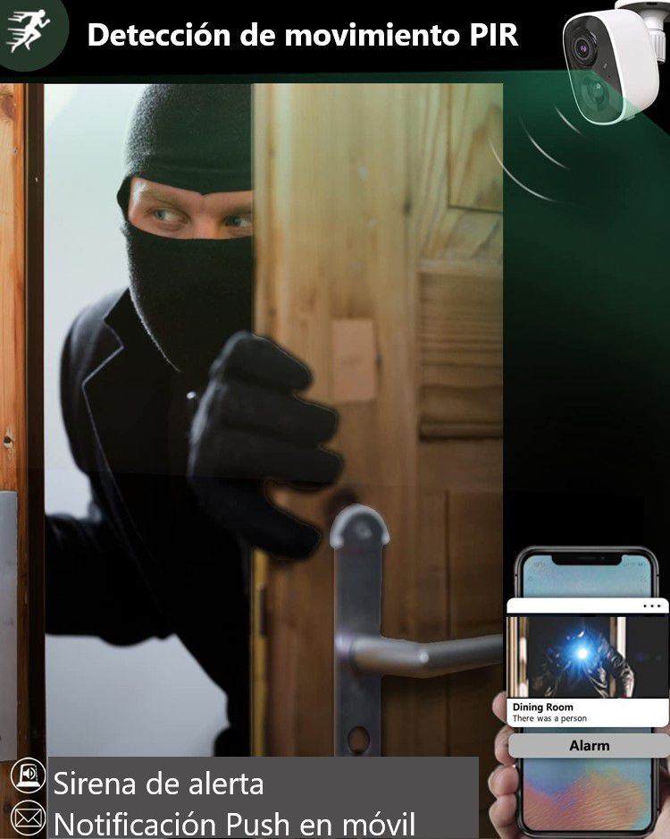 Cámara de vigilancia con batería recargable WiFi VICOHOME CG6 con PIR REAL capaz de notificar de forma automática en el móvil la detección de movimiento.