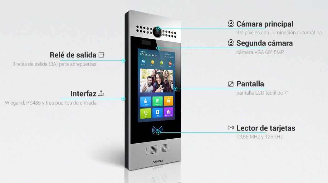 En resumen, el videoportero IP de AKUVOX proporciona una solución avanzada y completa para fortalecer la seguridad y la gestión de acceso en diversos entornos.
